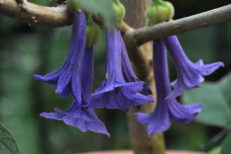 Иохрома (Iochroma) — ее цветочки любят группироваться в плотные пучки, которые чем то похожи на колокольчики. Цветки Иохрома coccineum окрашиваются в пурпурный цвет, а колокольчики Iochroma cyaneum могут быть фиолетовыми или сиреневые окрасом.